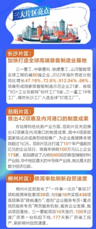 据介绍,3年来,湖南自贸试验区坚持以制度创新为核心,打造了世界级先进制造业集群、打造中非经贸深度合作先行区、打造国际投资贸易走廊等7个重点领域,深入实施了119项改革试点任务,形成了两批共计84项特色制度创新成果。