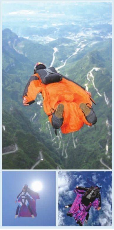 大图:9月14日,第九届翼装飞行世界锦标赛在张家界天门山战火重燃。一名翼装飞行运动员从天门山玉壶峰顶起跳台一跃而下进行试飞训练。小图:当日下午,法国翼装飞行运动员文森特·戴斯克和中国女登山运动员罗静,在天门山上空进行了翼装携伴双人飞行挑战。