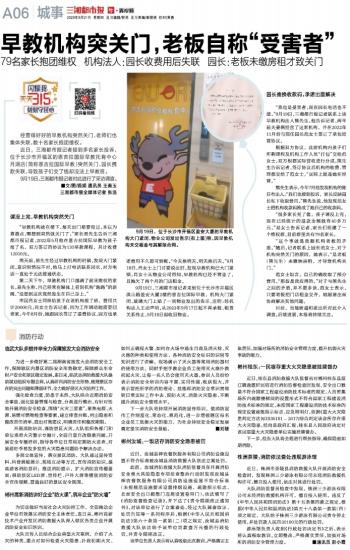 早教机构突关门,老板自称“受害者”