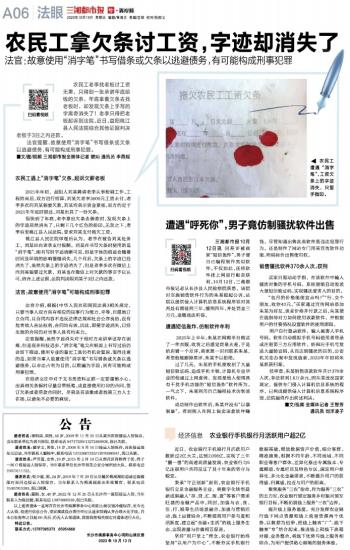 农民工拿欠条讨工资,字迹却消失了