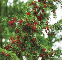 南方红豆杉全身都是宝。研究发现,红豆杉根、茎、叶、皮及果实中存有紫杉醇,它对治疗乳腺癌、卵巢癌有特效。3公斤南方红豆杉树皮中才能提炼出1克紫杉醇,所以南方红豆杉也是有名的“植物黄金”。