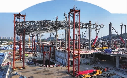 超700吨重屋盖稳稳落在柱上 站厅即将进入金属屋面施工