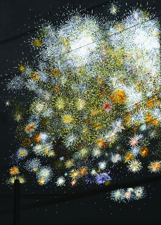 “这个作品一开始做起来并不简单,光是选择绣线的颜色都修改了很多次。”想要绣出烟花的美,色彩的选择极为重要。一开始,他选择了彩色的绣线,但是呈现效果并不佳。画面虽然色彩丰富,但却稍显杂乱。