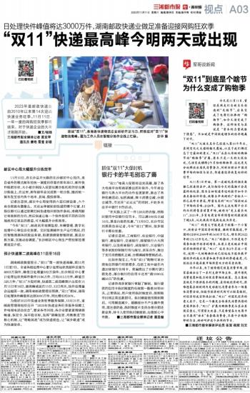 “双11”快递最高峰今明两天或出现