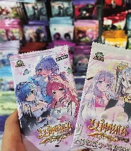 一款名叫“女神物语”的系列卡片包装袋上印着女性动漫人物,衣着大多暴露。
