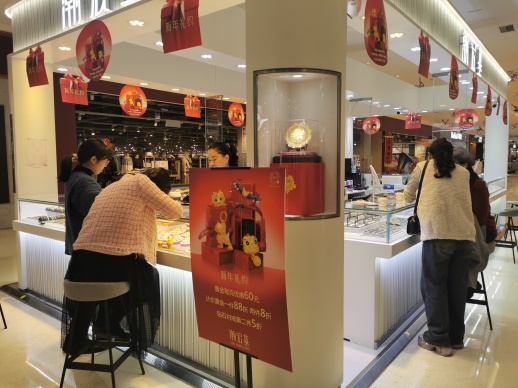 “我们有新店马上开业,三家门店一起做活动,黄金价格优惠力度也比较大。”在老凤祥湘江世纪城店,黄金最高可减100元/克,折旧费有相应优惠,有年轻情侣、老年人在店内了解黄金首饰。导购黄女士告诉记者,由于近几个月来黄金价格浮动比较大,观望的消费者也比较多。“不过正好到年底了,有婚庆、送礼等需求的客户。”