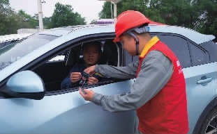 “国网湖南电动工作人员在指挥等候充电的车主有序进入充电站,发放序号牌,指导充电,一旁还有便民服务站,服务挺周到的。”