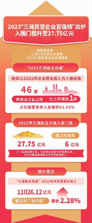 从2021年起,湖南民营企业百强榜单升级为“三湘民营企业百强榜”,每年发布一次,今年是第3次。