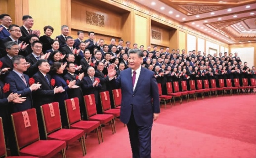 上午11时30分许,习近平等来到人民大会堂东大厅,全场响起热烈掌声。习近平等向代表们挥手致意,同大家亲切交流并合影留念。