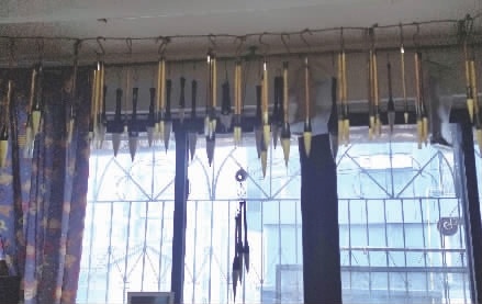 走进有些古旧的杨氏毛笔庄,入眼便是满屋的成型毛笔,黄希林戴着老花镜,正在拿着一支湘笔笔杆认真地修正。