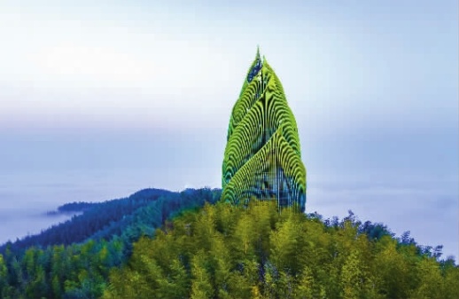 1月3日,桃江县桃花江竹海景区云雾缭绕,形似“大竹笋”的景观塔非常醒目。该文旅景观标志性建筑高56.95米,主体建筑已基本完工。