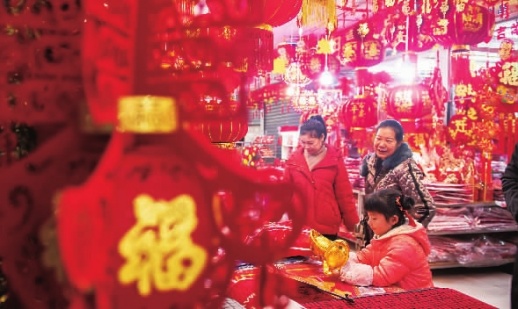 1月14日,在湖南省娄底市娄星区九龙批发市场,市民在选购新春饰品。春节临近,多地大街小巷年味渐浓,人们在喜庆的氛围中迎接新春佳节。