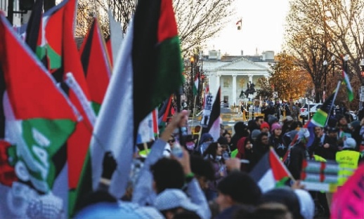 冲突进入百天之际,大批示威者在美国首都华盛顿、纽约市、洛杉矶市等地集会,要求加沙地带立即实现停火。在华盛顿,一批支持巴勒斯坦的示威者要求美国总统拜登停止向以色列提供武器,“立即停火”。