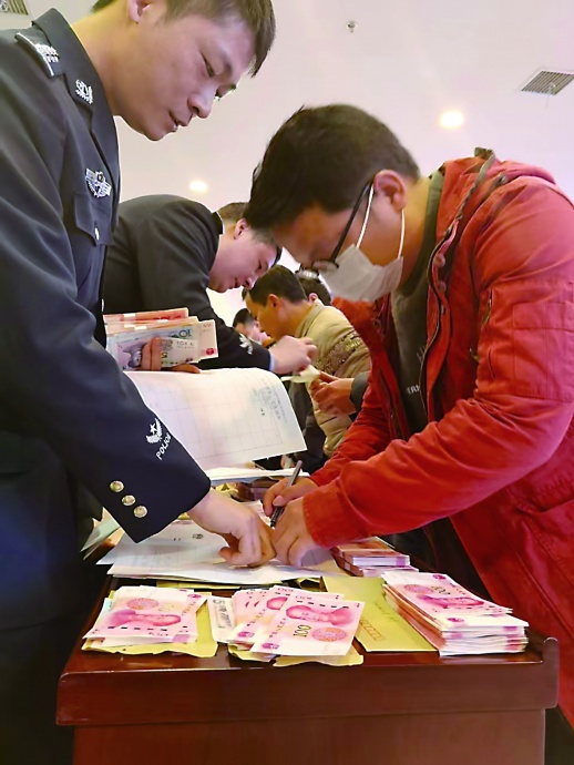 日前,长沙市公安局公交治安分局举行“5·15”专案涉案财物发还大会,龚先生领到了自己被骗的6万多元,他说:“本来没抱多大希望,没想到全部追回来了。特别感谢民警坚持不懈追赃,今后我也会吸取教训,不轻信骗局。”