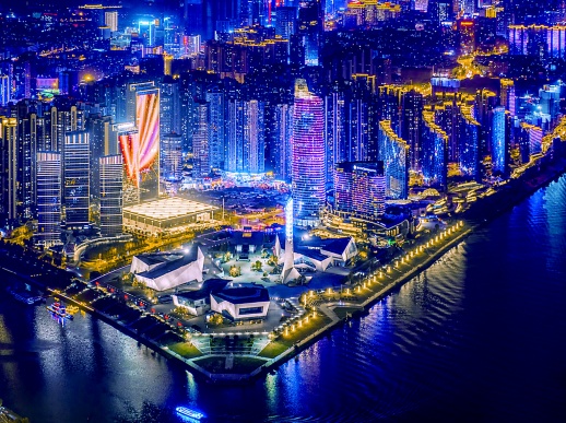 在中央广播电视总台的相关新闻中,可以惊鸿一瞥长沙分会场的真容:滨江文化园的三馆一厅、景观塔及周边楼宇亮起了夺目的灯光,一江两岸,光影绚烂。