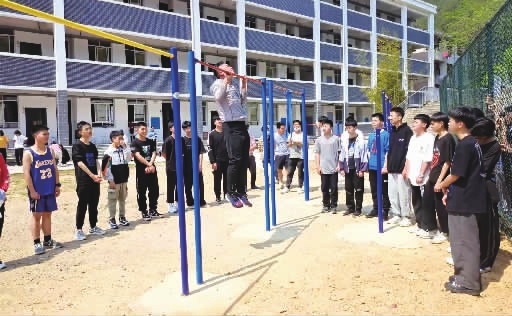 2023年9月,退伍军人钟灿任岑川中学体育小组组长,承担九年级4个班的教学任务外,每日6时30分带学生做早操。自2014年响应国家号召投身至岳阳市“三区”支教工作,今年是他在平江县支教的第10年。“孩子们无论去哪,只要坚持学习就好。”他说。