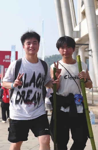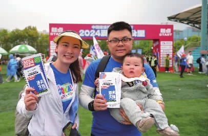 4月14日下午,株洲体育中心,“魅力潇湘 青春毅行”2024湖南(春季)百公里徒步活动在这里顺利落下帷幕,数千名参与者共同在湘江两岸展开一场人文与自然交融的徒步之旅,深入领略湖湘风光与文化底蕴。①年轻小伙举着“拐杖”抵达终点;②8个月大的孩子随父母出发;③70多岁的娭毑抵达活动终点。