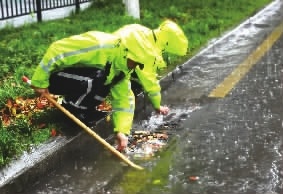 “太感动了,这么大的雨,交警不但在雨中指挥交通,还冒着雨用手在掏下水道口。”长沙市民刘女士用手机记录了感人一幕。上午9时,她开车经过长沙市雨花区湘府路路段,在一处积水点一名穿着荧光黄雨衣的交警弓着身子,用手清理排水口,将排水口井盖掀起。