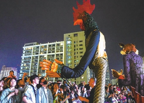 三湘都市报5月7日讯 5月7日晚,法国大型木偶剧《拉封丹寓言》亮相长沙街头,在IFS L7雕塑花园上演。