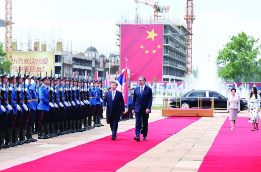 5月的贝尔格莱德,阳光明媚。塞尔维亚大厦前,中塞两国国旗迎风飘扬,仪仗队威武雄壮。习近平和夫人彭丽媛乘车抵达时,塞尔维亚总统武契奇和夫人塔玛拉在下车处热情迎接。