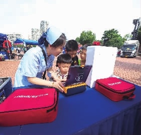 12日上午,在湖南长沙西湖公园一角,不少家长带着孩子在现场观看救援视频和指导。“刚刚体验了一把,感觉很真实,以后出现危急时刻,可以活学活用。”来自西湖街道的王女士说。