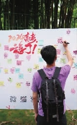在长沙市第一中学、长沙市周南中学、湖南师大附中梅溪湖中学考点外,一面由湖南日报社教育工作室设置的高考“许愿墙”吸引众多家长考生驻足打卡:“向着最美的风景进发”“心之所向,星辰大海”“笔锋所至,皆是心中所想”……满怀希冀的父母,稚气可爱的弟弟妹妹,热情洋溢的志愿者,都在这面墙上为奋力拼搏的考生们写下最诚挚的祝福。