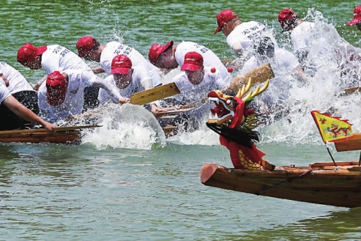 6月10日,新化县炉观镇月弓村,龙舟逐浪竞渡。当天,该县各乡镇纷纷举办龙舟竞赛,让群众在浓厚的节日中感受中华传统文化的独特魅力。