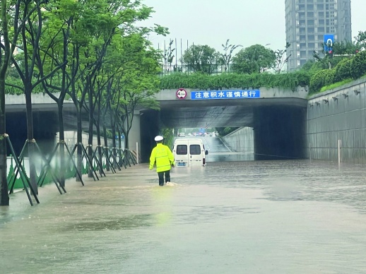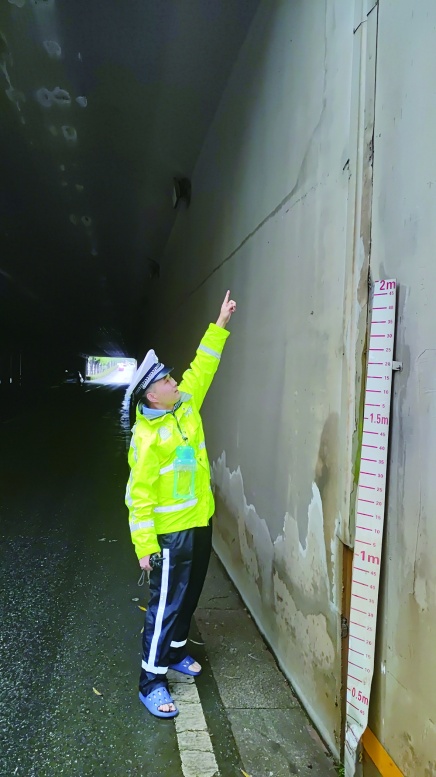 “这条线就是当时的水位线。”6月26日上午,长沙市雨花区香樟路下穿花侯路涵洞,雨花交警十中队中队长梁亮贤指着离地面约3米的一处水印告诉记者。连日大雨,梁亮贤和同事们在辖区易积水路段巡逻,每一个下水道井盖、排水沟盖板都摸得清清楚楚,哪块搬不动,哪里容易堵,都牢记脑中。
