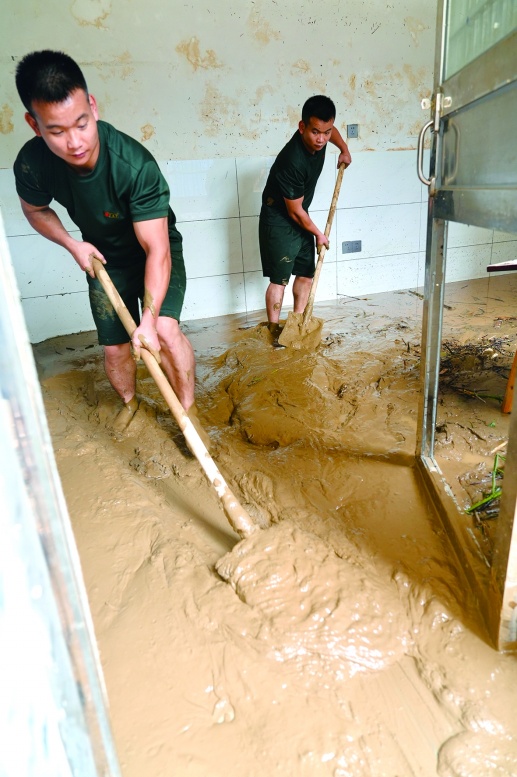 当天上午,武警岳阳支队某中队官兵整装集结,火速驰援浯口镇,投入清淤工作。当区传桦、区传祺两名战士进门,王龙辉愁容舒展:“看着他们,就像看到自己的孩子。”