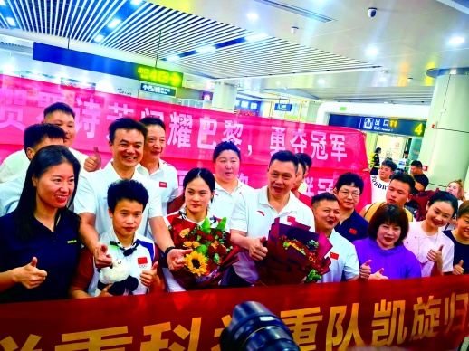 “感谢大家的支持,回到家乡感觉非常亲切。”横幅,鲜花,一米一位湘籍冠军等候相迎……8月15日下午,在巴黎奥运会分别夺得举重女子49公斤级、举重女子59公斤级、花样游泳团体项目金牌的三位湘妹子侯志慧、罗诗芳、张雅怡回到湖南,感受到了家乡人民的热情。■文/图/视频 三湘都市报全媒体记者 叶竹