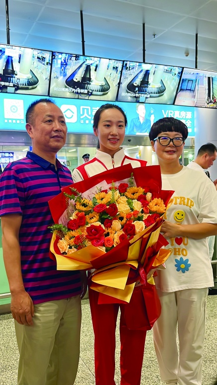 “感谢大家的支持,回到家乡感觉非常亲切。”横幅,鲜花,一米一位湘籍冠军等候相迎……8月15日下午,在巴黎奥运会分别夺得举重女子49公斤级、举重女子59公斤级、花样游泳团体项目金牌的三位湘妹子侯志慧、罗诗芳、张雅怡回到湖南,感受到了家乡人民的热情。上图:8月15日,侯志慧(前排左)、罗诗芳(前排右)回到湖南长沙。下图:同日,回到湖南长沙的张雅怡和爸爸妈妈在一起。三湘都市报全媒体记者 叶竹 通讯员 余梦璇 兰佳琛