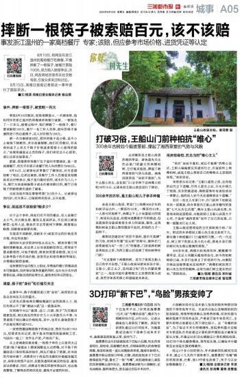 8月10日,有网友在浙江温州的高档餐厅吃晚餐,不慎摔断了一根筷子,被餐厅索赔100元,双方陷入赔偿争议。次日,网友将经历发布在社交账号后,引发众多关注和讨论。