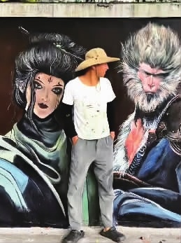 目前,王雁“黑神话:悟空”系列作品完成了四幅,《八戒与蜘蛛精》《四妹与天命人》《三大反骨仔》《菩提祖师·悟空》,还剩下五面墙待完成。王雁表示,“后续会根据网友的建议继续创作,形成一个完整系列,更好方便大家打卡。”