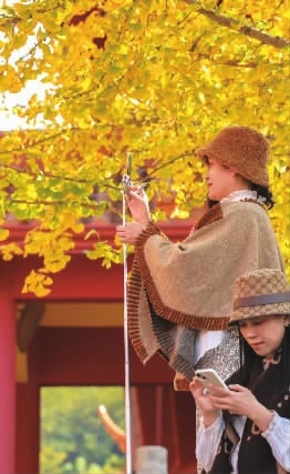 12月2日,长沙洗心禅寺的两棵银杏树吸引市民争相打卡(图①②)。长沙芙蓉中路,道路两旁的银杏树渐入观赏期(图③)。