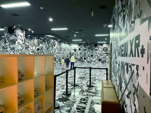 记者在现场看到,足足300平方米的体验区由布满涂鸦的空旷空间组成,现场一名工作人员正在帮助家长和孩子穿戴设备,“我们的设备均为最新版PICO ULTRA 4眼镜,已经去除了传统的VR背包设备,可以让体验过程更加轻便。”工作人员介绍道。