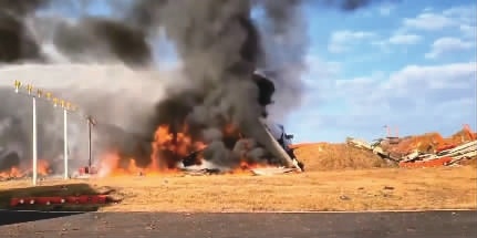 事发于当地时间29日9时07分左右。当地电视台播出画面显示,飞机试图在起落架未正常放下的情况下迫降,结果偏离了跑道,最后撞上机场围墙,爆炸起火,机身也断成两截。