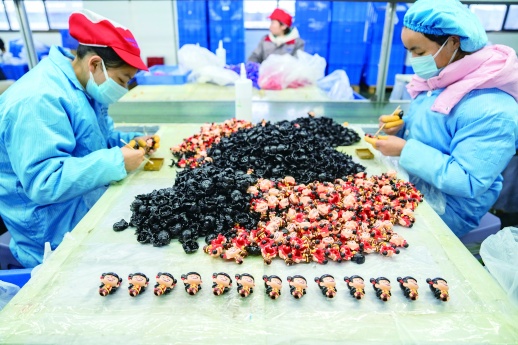 2月6日,湘潭综合保税区,湖南桑尼森迪玩具制造有限公司生产车间,工人在生产“魔童哪吒”塑胶玩偶。随着今年春节档电影《哪吒之魔童闹海》持续火爆,该公司获授权生产的“魔童哪吒”塑胶玩偶需求量大增。