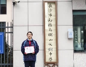 三湘都市报2月18日讯 2月18日8时,长沙市南雅马栏山文创中学的校门左侧,新挂上的“长沙市南雅马栏山文创中学”校名牌匾吸引了来往学生的注意,这幅书法作品的作者正是该校的初二学生何祉杨。
