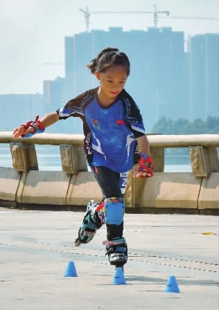 倒脚、摆臂、压刃……一道红色身影在桩间轻盈穿梭。12岁的蔡雯贤从4岁开始练习轮滑,如今已是获奖无数的“10后”追风少女,8年磨坏12双轮滑鞋,用自己的热爱和坚持滑出冠军路。