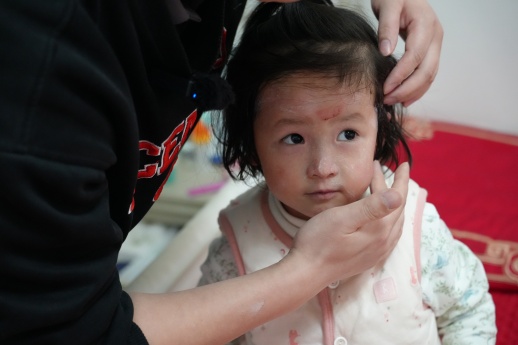 晨晨的护理工作极为繁琐。每天至少两次的换药护理,妈妈都要小心翼翼地揭开敷料,处理新出现的伤口。每一次碰撞、每一处摩擦,都会在晨晨脆弱的皮肤上留下伤痕。处理完伤口后,妈妈还要为晨晨全身涂抹保湿霜,贴上新的敷料,再穿上特制的袜子和手套,最后套上柔软的衣服。