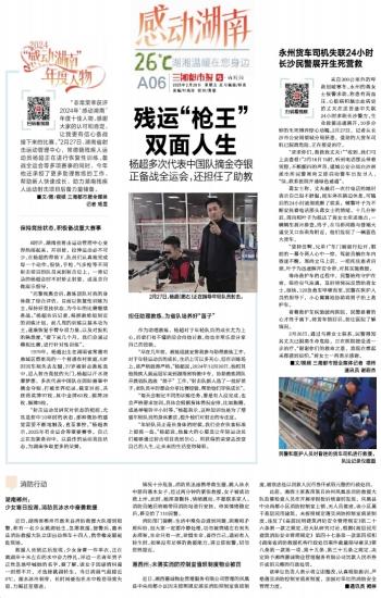 “非常荣幸获评2024年‘感动湖南’年度十佳人物,感谢大家的认可和肯定,让我更有信心备战接下来的比赛。”2月27日,湖南省射击运动管理中心,常德籍残疾人运动员杨超正在进行恢复性训练。备战全运会等多项赛事的同时,今年他还承担了更多助理教练的工作,帮助新人快速成长,助力湖南残疾人运动射击项目后备力量储备。