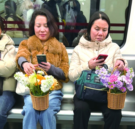 多家花店的混搭花束已占据主流,紫罗兰、蝴蝶兰、风铃花都是热门搭配品种。主流鲜花品种如康乃馨和玫瑰不再局限于鲜艳的颜色,而是主打淡色系和喷色复古样式。在6号线地铁上,记者看到有两位阿姨正提着混搭花束编织小花篮,“这是我们自己给自己买的礼物,今年好多花店都有卖这种。”两位阿姨说。