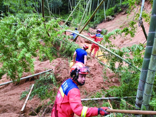 “雨越下越大,看不清前进的路。救援车队行至何家山道路舟山地段,第一辆消防车通过后,突然发生了山体滑坡,车被阻断无法前进”。为了尽快实施救援,资兴消防救援大队教导员方瑜决定徒步挺进八面山。经过10余个小时的艰难跋涉,方瑜终于带着队员们进入受灾地。