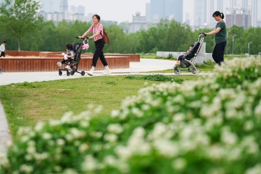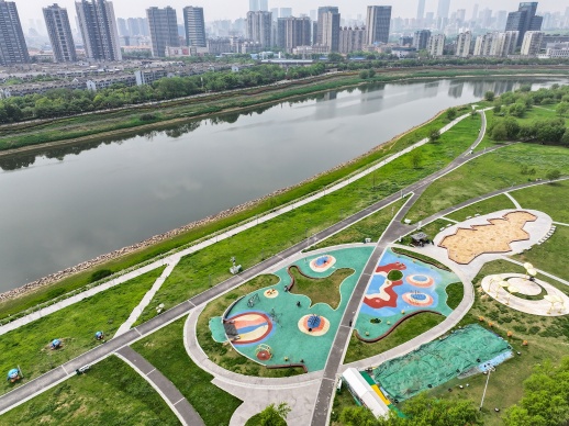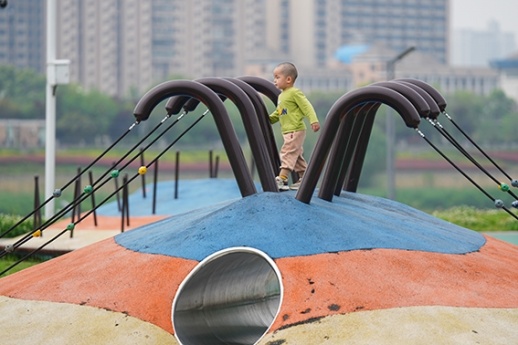 4月10日,在长沙市开福区马栏山片区鸭嘴公园,小朋友和家人在玩耍。近年来,长沙市开福区马栏山片区因地制宜对公共空间进行“适儿化改造”,融合科普、娱乐、休憩、运动等功能,系统打造儿童友好设施,以“1米高度”视角规划公共空间,在为儿童提供趣味场景的同时,也通过适儿化设计提升城市人文温度。新华社 图