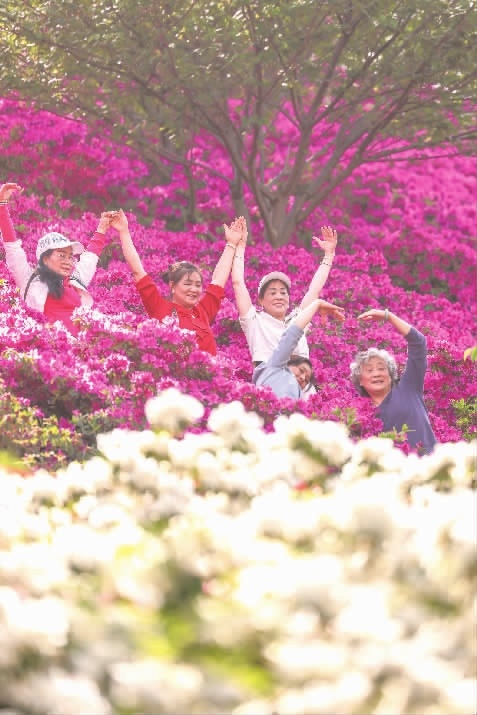 4月14日,长沙晚安家居文化园,瀑布般的杜鹃花美不胜收。 4月的长沙,正迎来杜鹃花的盛花时节。从城市公园到国家森林公园,长沙各大赏花地纷纷进入花期,姹紫嫣红的杜鹃花海吸引了众多市民和游客前来打卡。