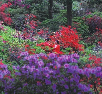 作为长沙杜鹃花观赏的核心地之一,湖南省植物园内的国家杜鹃园(现名为杜鹃花国家林木种质资源库)眼下已迎来盛花期。园区总面积达450亩,分布着300种中外杜鹃品种,包括鹿角杜鹃、映山红、羊踯躅、满山红等常见及珍稀种类。红、粉、白、黄、淡紫、绛紫……各种颜色交织在一起,犹如百鹃争艳的春日盛宴。