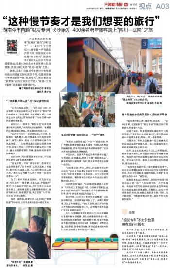 开往春天的列车载着“银发族”驶向“诗和远方”……4月21日13时30分,伴随着一声悠扬的汽笛长鸣,湖南地区今年首趟“银发专列” 旅游列车Y487次从长沙火车站缓缓驶出,载着400余名老年旅客开往甘肃陇南,开启为期7天的“四川—陇南”之旅。
