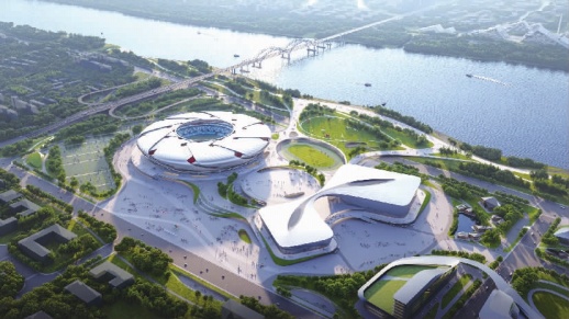 27日,长沙奥体中心开工仪式在长沙市奥体新城片区举行。该项目位于天心区,占地面积1000亩,规划建设包括主体育场、综合体育馆、跳水游泳馆在内的“一场两馆”及配套设施,可容纳近10万人,未来将成为集高端赛事、全民健身、文体展演、休闲娱乐等功能于一体的长株潭融城发展新地标。图为长沙奥体中心东北侧鸟瞰效果图。