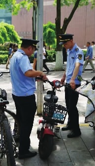 “大学城周边住户多,电动车也多。”肖鑫锋和队员们将停在划线区域外的电动车搬回,“看着是小事,但有一辆电动车违停,人行道上就多了一个障碍,人流量一大,就堵上了。”