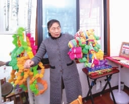 她将废旧材料“变身”益智玩具